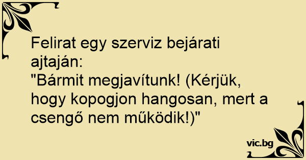 "Bármit megjavítunk! (Kérjük, hogy kopogjon hangosan, mert a csengő nem működik!)"