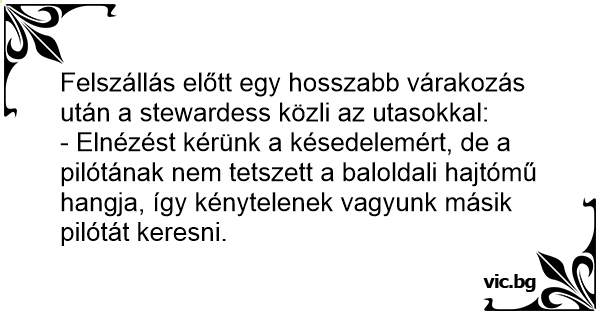 Felszállás előtt egy hosszabb várakozás után a stewardess közli az utasokkal: