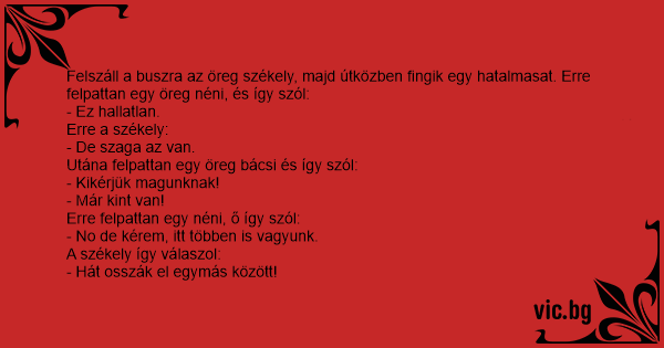 Felszáll a buszra az öreg székely, majd útközben fingik egy hatalmasat. Erre felpattan egy öreg néni, és így szól: