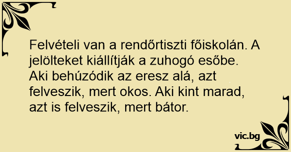 Aki behúzódik az eresz alá, azt felveszik, mert okos. Aki kint marad, azt is felveszik, mert bátor.