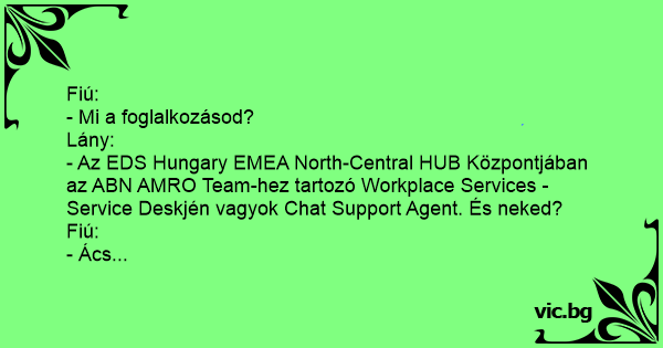 - Az EDS Hungary EMEA North-Central HUB Központjában az ABN AMRO Team-hez tartozó Workplace Services - Service Deskjén vagyok Chat Support Agent. És neked?