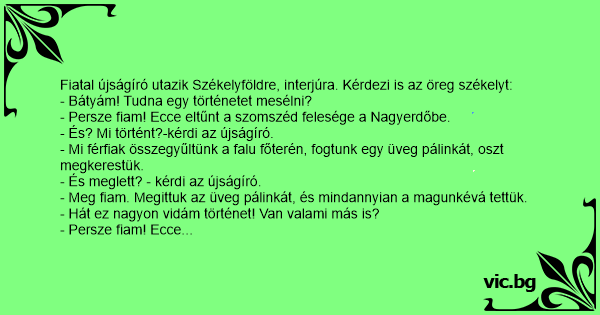 Fiatal újságíró utazik Székelyföldre, interjúra. Kérdezi is az öreg székelyt: