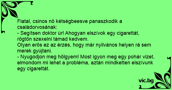 - Segítsen doktor úr! Ahogyan elszívok egy cigarettát, rögtön szexelni támad kedvem.