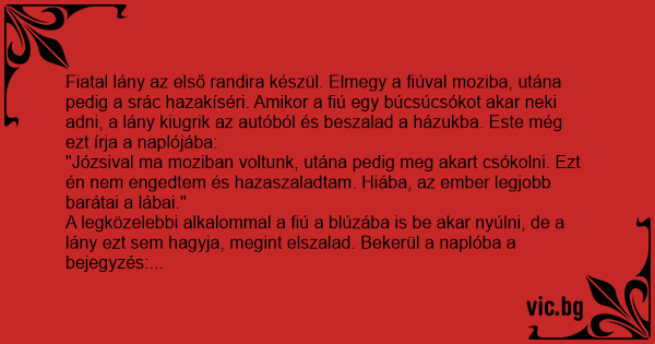 A legközelebbi alkalommal a fiú a blúzába is be akar nyúlni, de a lány ezt sem hagyja, megint elszalad. Bekerül a naplóba a bejegyzés: