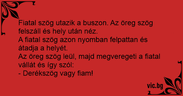 Az öreg szög leül, majd megveregeti a fiatal vállát és így szól: