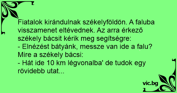 Fiatalok kirándulnak székelyföldön. A faluba visszamenet eltévednek. Az arra érkező székely bácsit kérik meg segítségre: