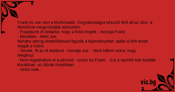 - Fogadjunk öt dollárba, hogy a fickó leugrik - mondja Frank.