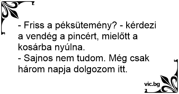 - Friss a péksütemény? - kérdezi a vendég a pincért, mielőtt a kosárba nyúlna.