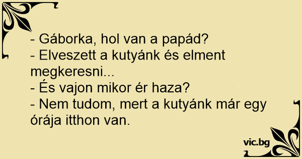 - Nem tudom, mert a kutyánk már egy órája itthon van.
