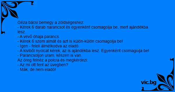 - Kérek 6 darab narancsot és egyenként csomagolja be, mert ajándékba lesz.