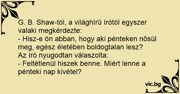 G. B. Shaw-tól, a világhírű írótól egyszer valaki megkérdezte: