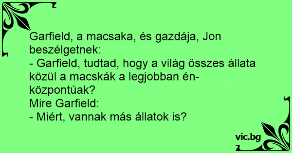 - Garfield, tudtad, hogy a világ összes állata közül a macskák a legjobban én-központúak?