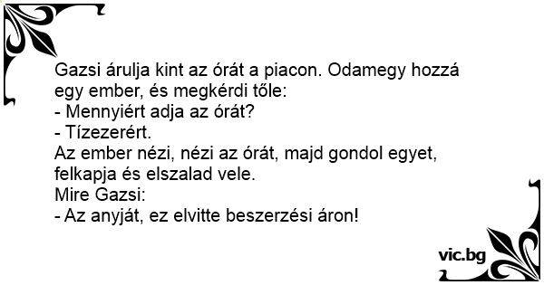 Gazsi árulja kint az órát a piacon. Odamegy hozzá egy ember, és megkérdi tőle: