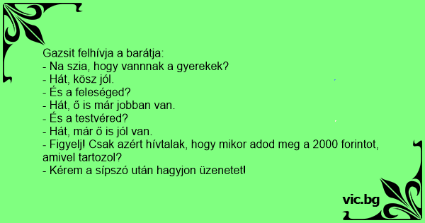- Figyelj! Csak azért hívtalak, hogy mikor adod meg a 2000 forintot, amivel tartozol?