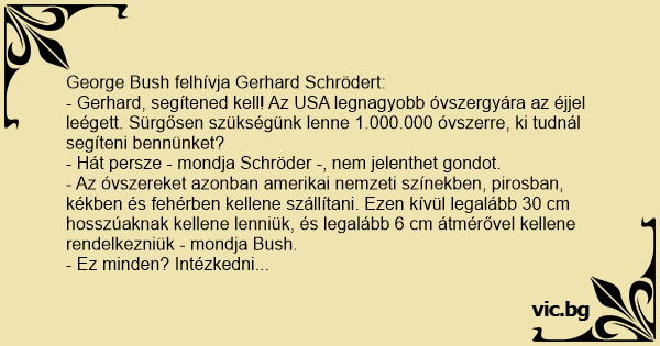 - Gerhard, segítened kell! Az USA legnagyobb óvszergyára az éjjel leégett. Sürgősen szükségünk lenne 1.000.000 óvszerre, ki tudnál segíteni bennünket?