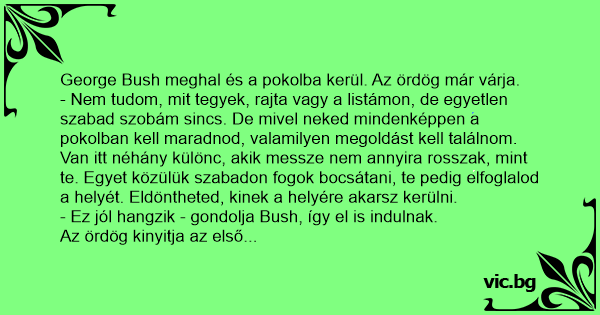 - Ez jól hangzik - gondolja Bush, így el is indulnak.