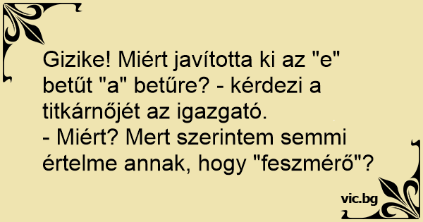 Gizike! Miért javította ki az "e" betűt "a" betűre? - kérdezi a titkárnőjét az igazgató.
