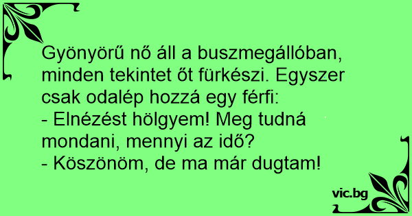 - Elnézést hölgyem! Meg tudná mondani, mennyi az idő?
