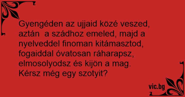 Gyengéden az ujjaid közé veszed, aztán a szádhoz emeled, majd a nyelveddel finoman kitámasztod, fogaiddal óvatosan ráharapsz, elmosolyodsz és kijön a mag.