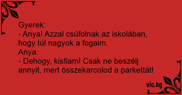 - Anya! Azzal csúfolnak az iskolában, hogy túl nagyok a fogaim.