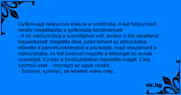 - A nő valószínűleg a szeretőjével volt, amikor a férj váratlanul hazaérkezett. Meglátta őket, ezért kiment az előszobába, elővette a páncélszekrényből a pisztolyát, majd visszament a hálószobába, és két lövéssel megölte a feleségét és annak szeretőjét. Ezután a fürdőszobában fejbelőtte magát. Elég szörnyű eset. - összegzi az egyik rendőr.