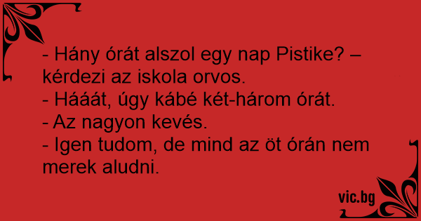 - Hány órát alszol egy nap Pistike? – kérdezi az iskola orvos.