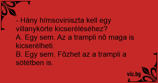 - Hány hímsoviniszta kell egy villanykörte kicseréléséhez?