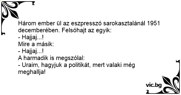 - Uraim, hagyjuk a politikát, mert valaki még meghallja!