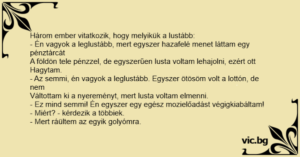Három ember vitatkozik, hogy melyikük a lustább: