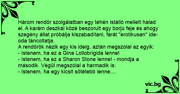 - Istenem, ha ez a Sharon Stone lenne! - mondja a második. Végül megszólal a harmadik is: