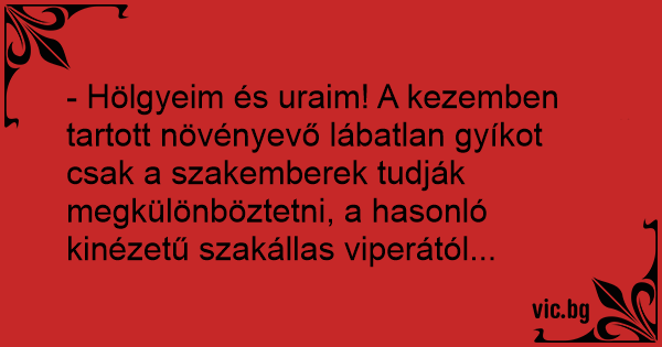 - Hölgyeim és uraim! A kezemben tartott növényevő lábatlan gyíkot csak a szakemberek tudják megkülönböztetni, a hasonló kinézetű szakállas viperától...