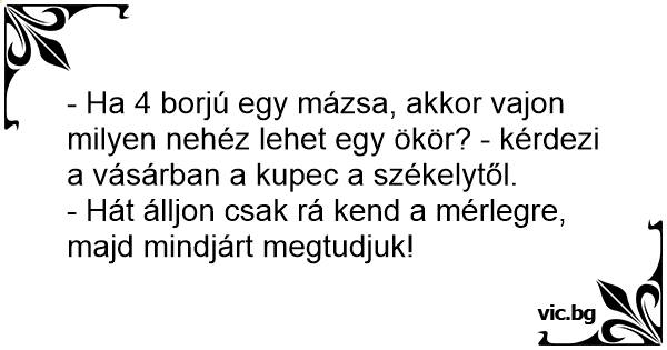 - Ha 4 borjú egy mázsa, akkor vajon milyen nehéz lehet egy ökör? - kérdezi a vásárban a kupec a székelytől.
