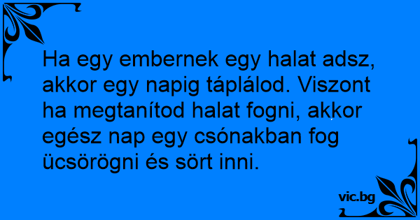 Ha egy embernek egy halat adsz, akkor egy napig táplálod. Viszont ha megtanítod halat fogni, akkor egész nap egy csónakban fog ücsörögni és sört inni.