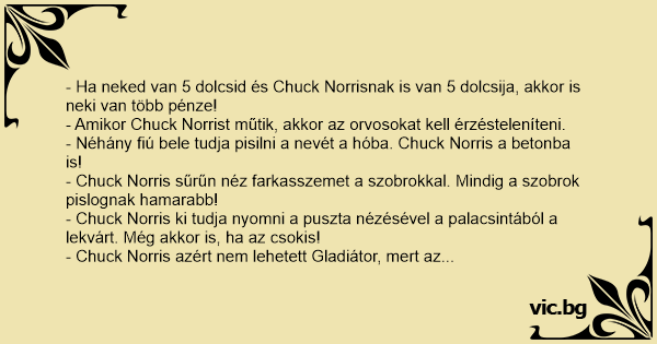 - Ha neked van 5 dolcsid és Chuck Norrisnak is van 5 dolcsija, akkor is neki van több pénze!