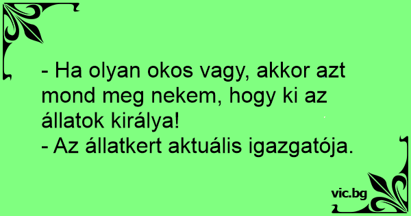 - Ha olyan okos vagy, akkor azt mond meg nekem, hogy ki az állatok királya!