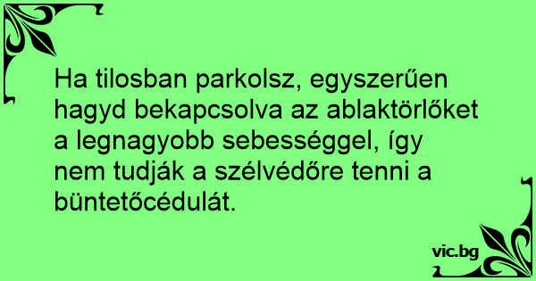 Ha tilosban parkolsz, egyszerűen hagyd bekapcsolva az ablaktörlőket a legnagyobb sebességgel, így nem tudják a szélvédőre tenni a büntetőcédulát.