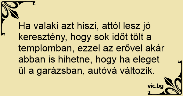Ha valaki azt hiszi, attól lesz jó keresztény, hogy sok időt tölt a templomban, ezzel az erővel akár abban is hihetne, hogy ha eleget ül a garázsban, autóvá változik.