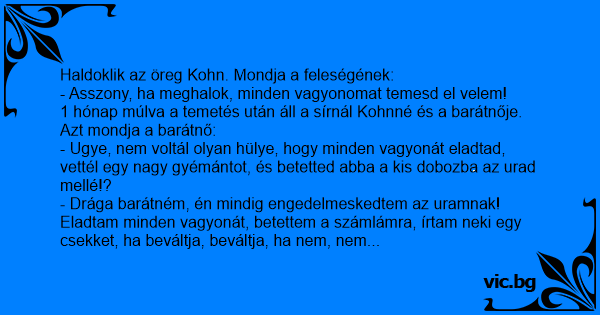 Haldoklik az öreg Kohn. Mondja a feleségének: