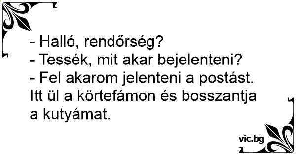 - Fel akarom jelenteni a postást. Itt ül a körtefámon és bosszantja a kutyámat.