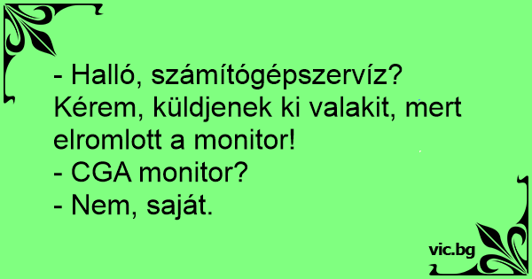 - Halló, számítógépszervíz? Kérem, küldjenek ki valakit, mert elromlott a monitor!
