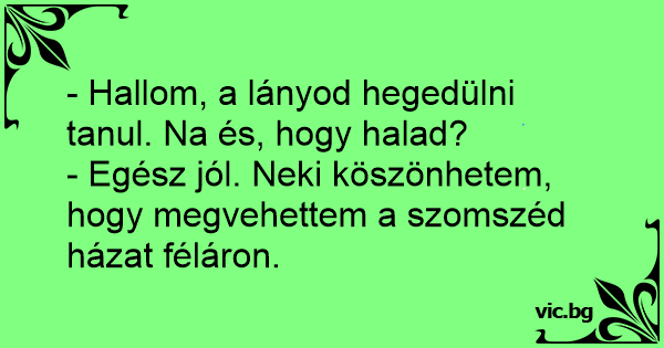- Hallom, a lányod hegedülni tanul. Na és, hogy halad?