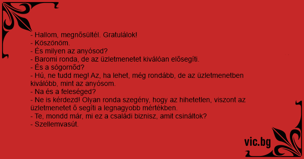 - Hú, ne tudd meg! Az, ha lehet, még rondább, de az üzletmenetben kiválóbb, mint az anyósom.