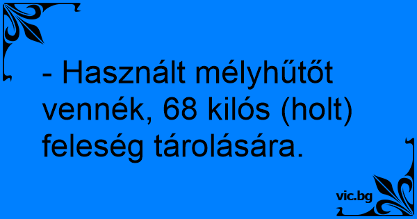 - Használt mélyhűtőt vennék, 68 kilós (holt) feleség tárolására.