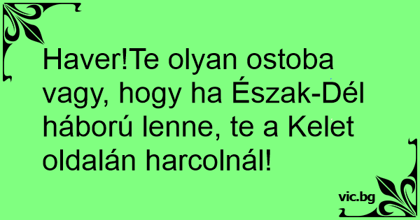 Haver!Te olyan ostoba vagy, hogy ha Észak-Dél háború lenne, te a Kelet oldalán harcolnál!