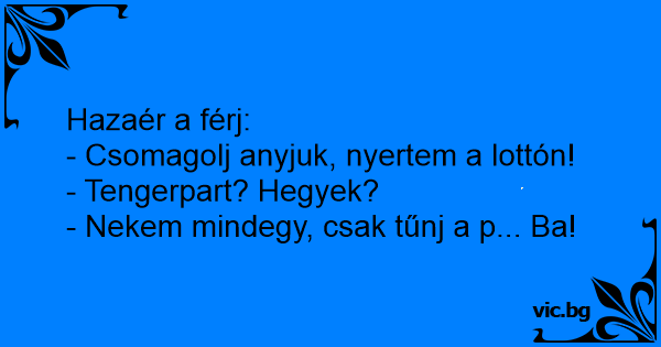 Hazaér a férj: - Csomagolj...