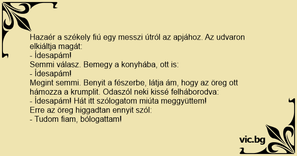 - Ídesapám! Hát itt szólogatom miúta meggyüttem!
