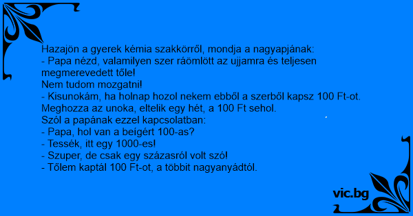 - Kisunokám, ha holnap hozol nekem ebből a szerből kapsz 100 Ft-ot.