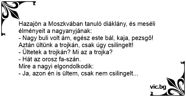 - Nagy buli volt ám, egész este bál, kaja, pezsgő! Aztán ültünk a trojkán, csak úgy csilingelt!