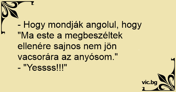 - Hogy mondják angolul, hogy "Ma este a megbeszéltek ellenére sajnos nem jön vacsorára az anyósom."