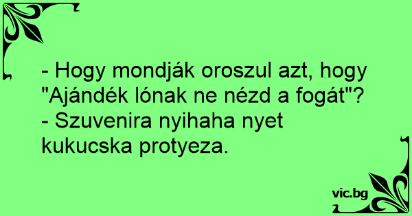 - Hogy mondják oroszul azt, hogy "Ajándék lónak ne nézd a fogát"?